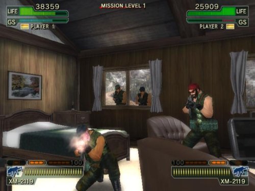 1人でも2丁撃ち 普段は2人でプレイしています。妻に言われ、1人でガングリップで2丁撃ちにトライ。気分は映画のバイオ。結構、1人2丁撃ちは難しく爽快。そして両腕が痛い。こんなプレイもアリかな。楽しく遊べるソフトです。ガングリップは買ってよかった。